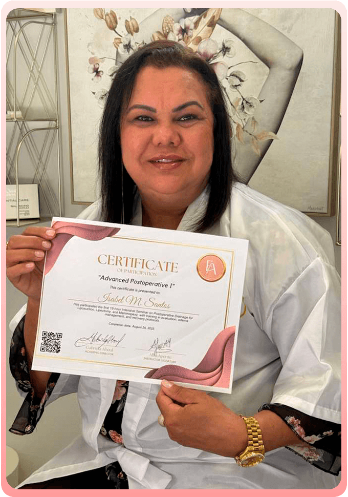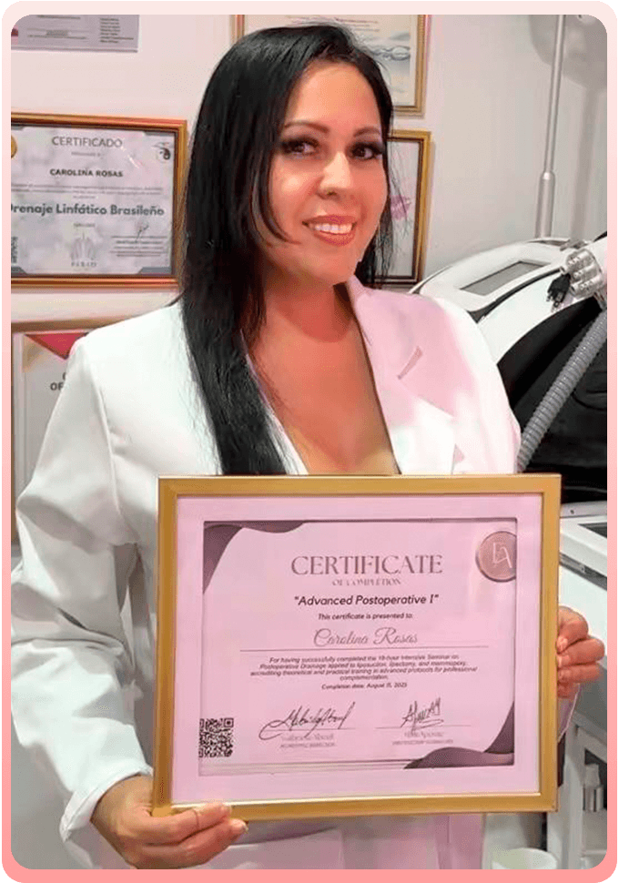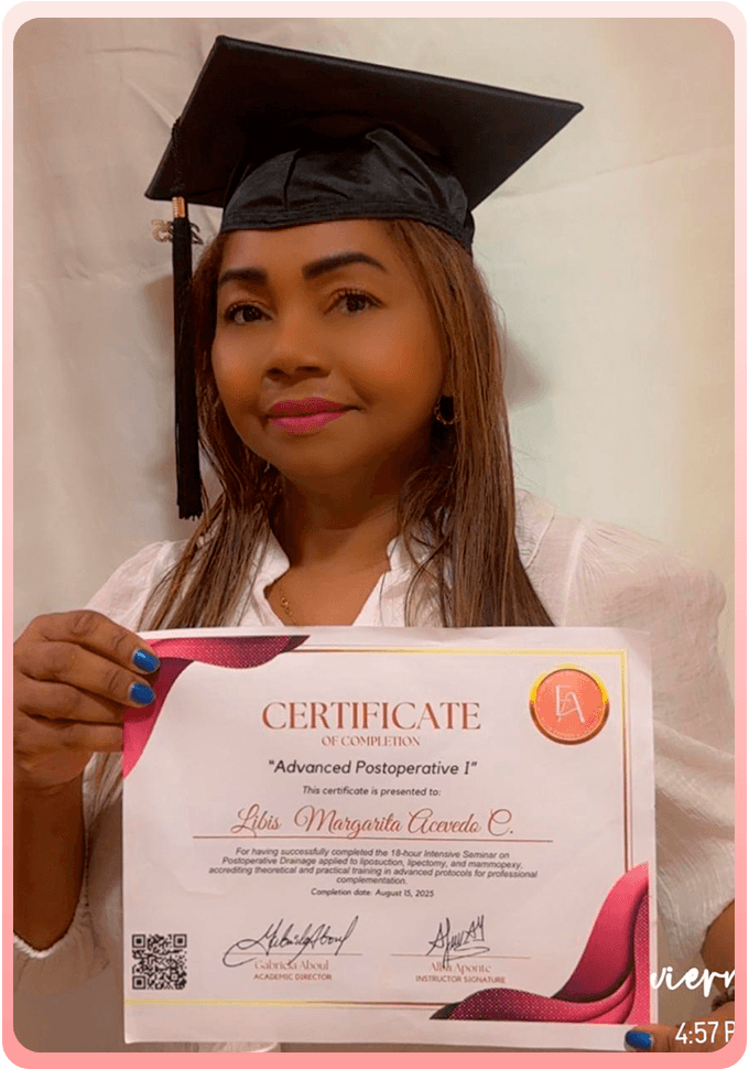 Especialista en postoperatorio estético con más de dos décadas de trayectoria clínica y docente. Su enfoque combina evidencia, criterio clínico y experiencia real para formar profesionales con seguridad y estructura. 1